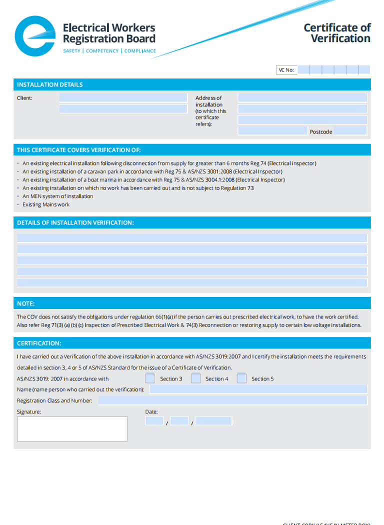 Electrical Certificate of Verification (COV)